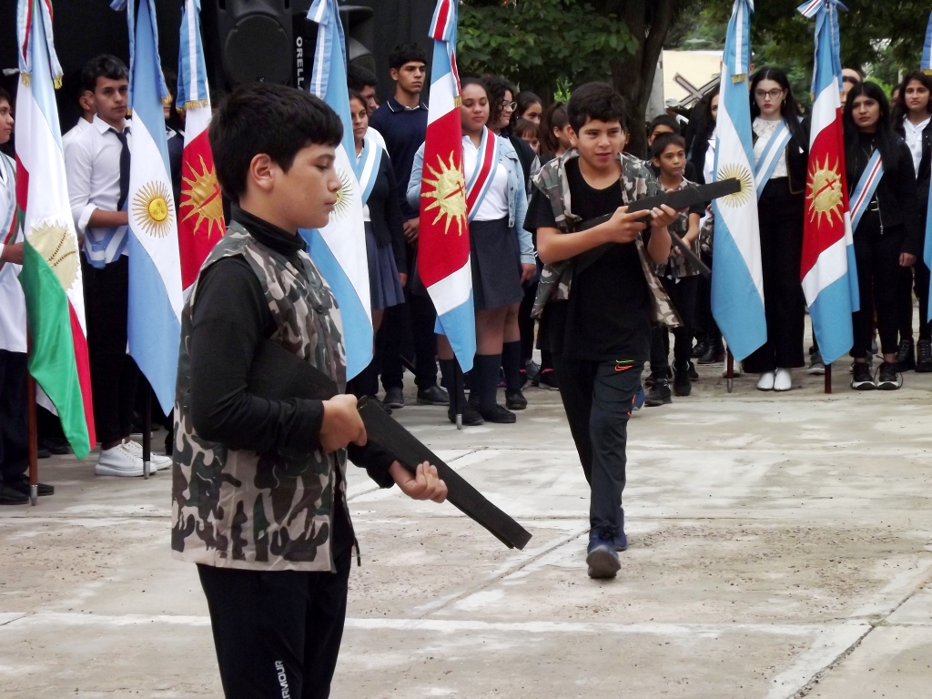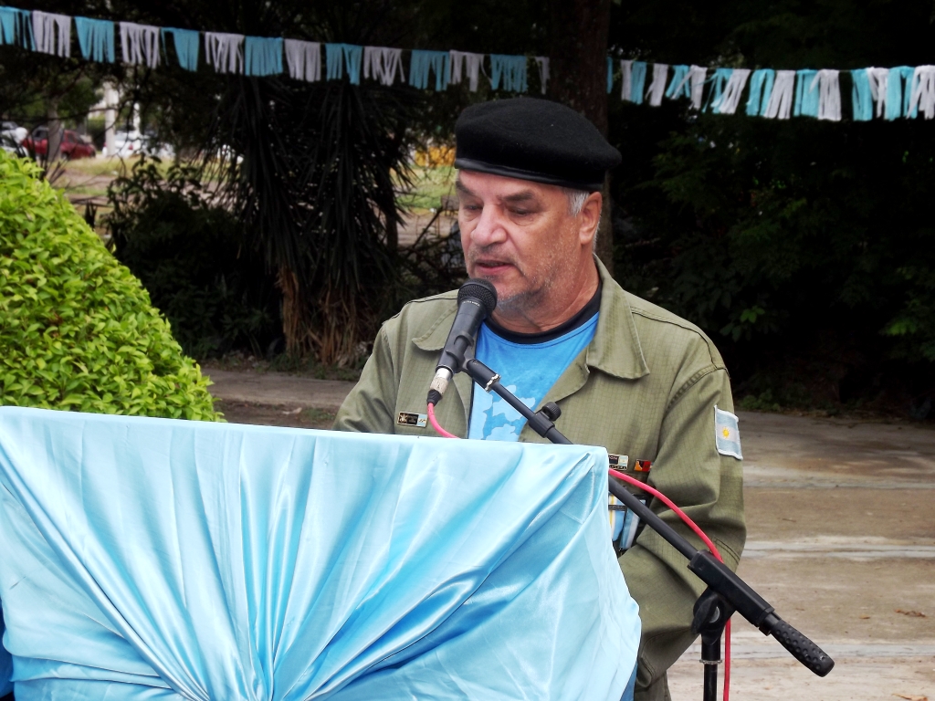 Mario Alberto Almirón, ex combatiente en las Islas Malvinas y fundador del Centro Malvinizador “Rodolfo de la Colina”, brindó un discurso emotivo en el que recordó momentos de aquella cruenta guerra y por su parte la alumna Irupe Suárez del Colegio José Bravo de Rueda, recitó una poesía referida a los héroes.