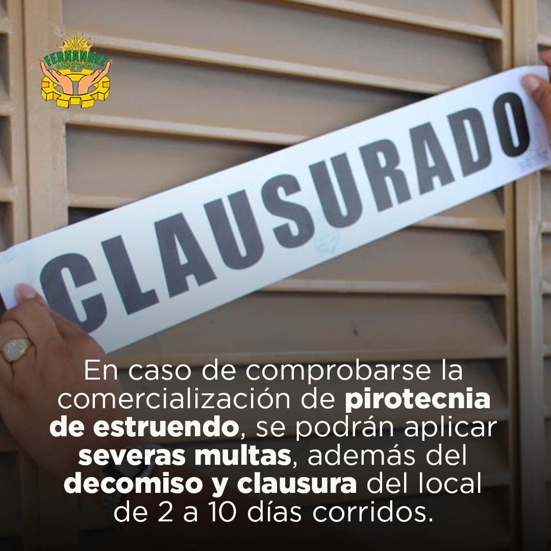 El municipio de la Ciudad de Fernández, a través de la Dirección de Bromatología y Saneamiento Ambiental, recordó a la población que desde el año 2019 rige la ordenanza que declara a la “Capital del Agro”, como territorio libre de pirotecnia de estruendo.