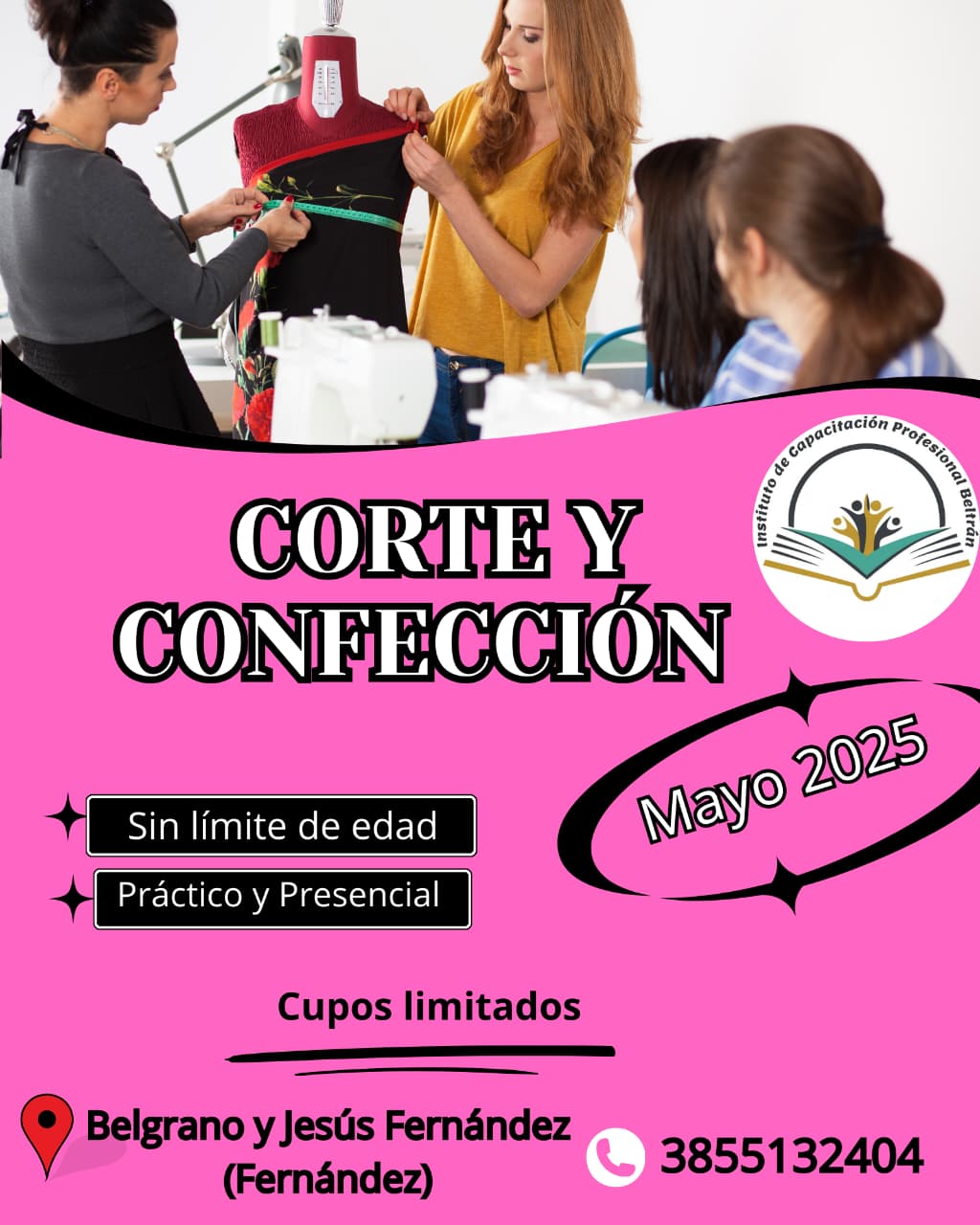 También dará inicio muy pronto, el curso de Corte y Confección este curso iniciará los primeros días de mayo, las inscripciones están abiertas y es sin límite de edad. Tendrá la modalidad práctico presencial y los cupos son limitados.