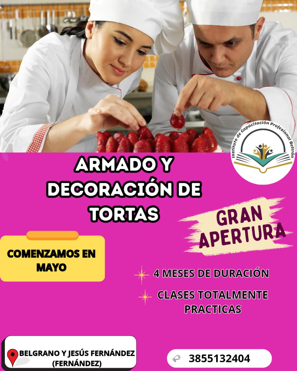 Otro de los cursos es el de armado y decoración de tortas, que tiene 4 meses de duración con clases totalmente prácticas. Este curso también inicia en el mes de mayo.