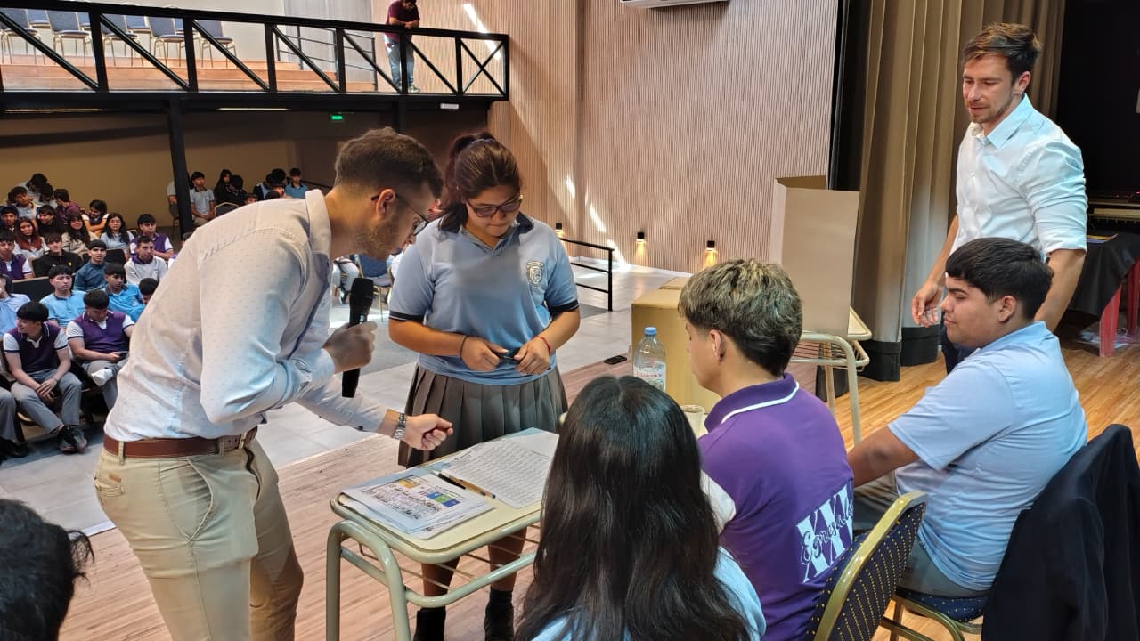 El panel de disertantes estuvo integrado por el Fiscal Municipal Dr. Martín Catella Paz y el Escribano Fiano Ronchetti, quienes desarrollaron la temática de manera dinámica y con la participación de los jóvenes, simulando el ejercicio de la votación y los principales aspectos legales a tener en cuenta al momento de concurrir a los centros de votación.