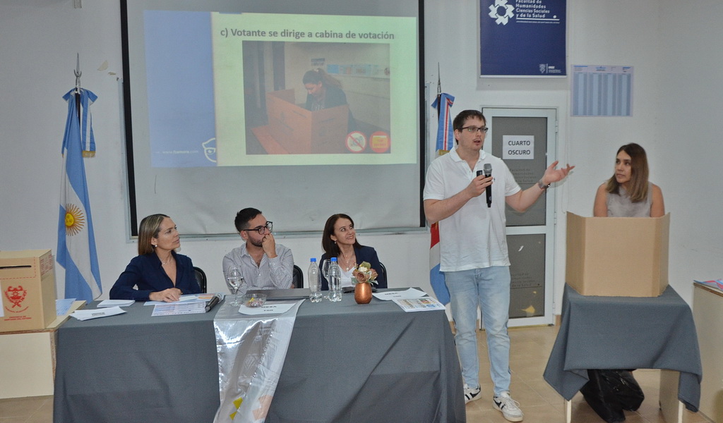 Durante su exposición, Hernán Campos compartió parte de las investigaciones que desarrolla en el Indes, referidas al sistema político santiagueño y las particularidades del partido predominante en la provincia. Además, agradeció “la predisposición de Francisco Zamora y de la Facultad por generar espacios de capacitación sobre esta nueva metodología de votación”, al tiempo que añadió que forman parte de numerosas actividades formativas que se vienen realizando, incluso en zonas rurales.