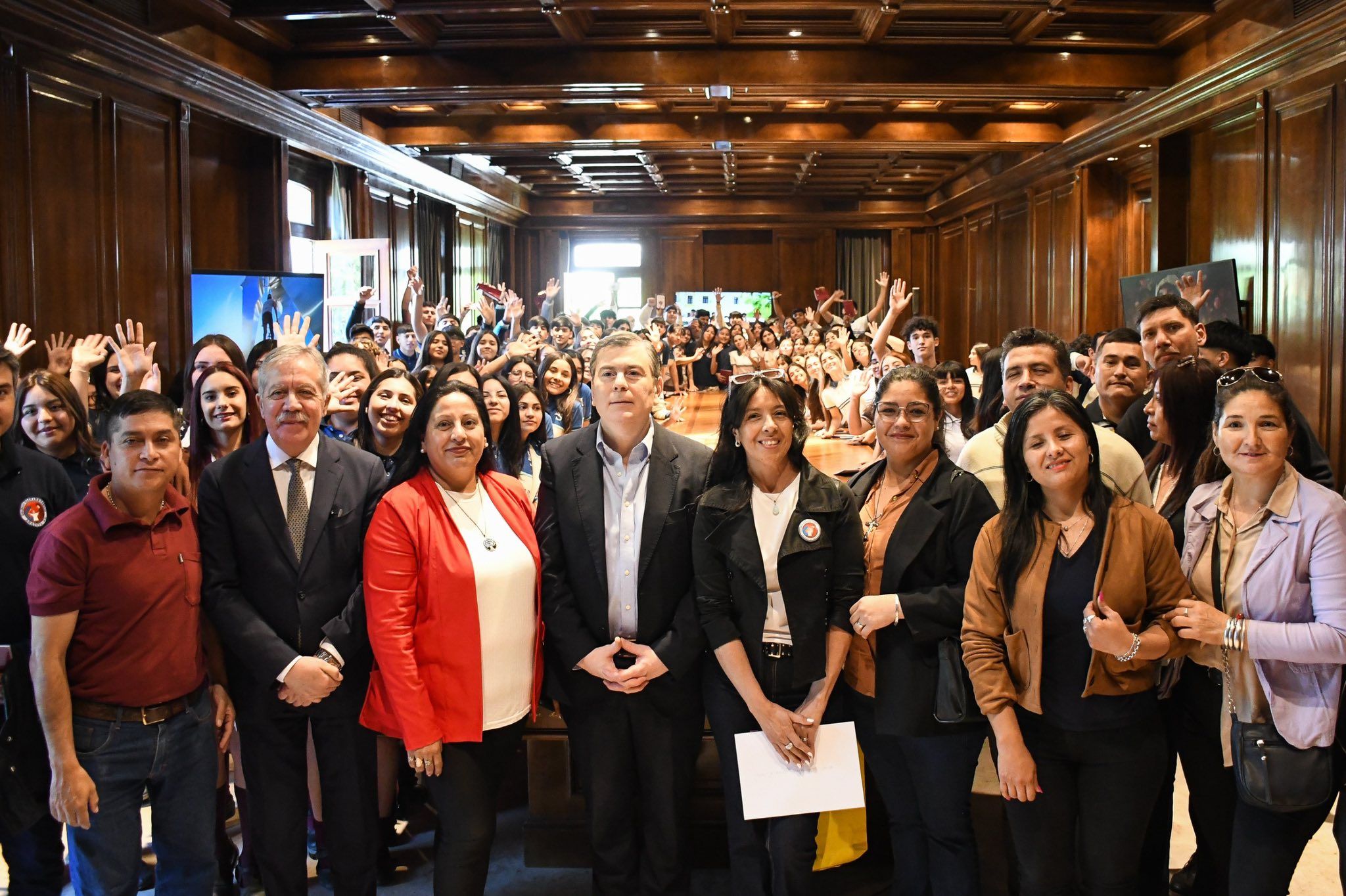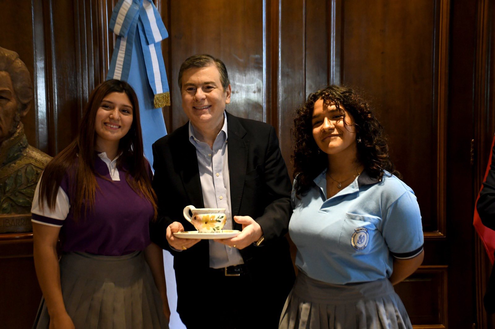 El gobernador Gerardo Zamora, junto al jefe de Gabinete de Ministros, Elías Suárez, recibió hoy en Casa De Gobierno la visita de alumnos del último año del secundario del Colegio Secundario Sagrada Familia de Añatuya, Dpto. Taboada; escuelas Piloto N° 1 y Técnica N° 12 de Fernández, Robles; Agrupamiento N° 86.126 de El Simbol, Silípica; Colegio Secundario Ciudad del Barco de El Polear, Dpto. Banda; Secundario Madre Antula de Laprida, Choya, y del secundario de las localidades de Fortín Inca y Guardia Escolta con sede en el Agrupamiento N° 86.100 de Cuatro Bocas, instituciones ubicadas en el Dpto. Belgrano.