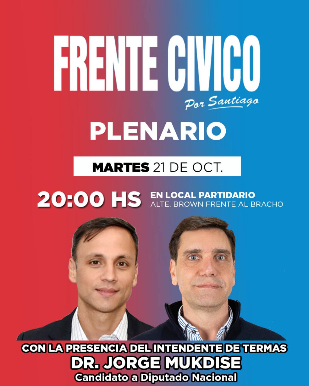 Mukdise participará de un plenario junto al Dr. Víctor Araujo, intendente de la ciudad de Fernández, a las 20 horas en el local partidario ubicado en calle Almirante Brown entre las calles Tucumán y Urquiza, frente al complejo “El Bracho”.