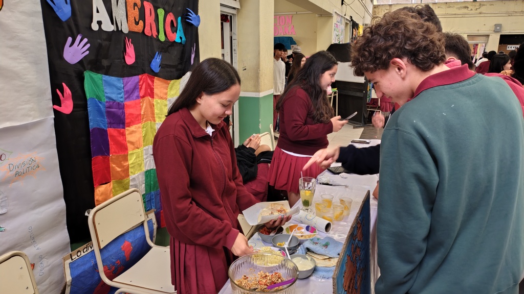 Otro de los stands fue el de el espacio de Historia donde los alumnos brindaron información sobre los pueblos de América latina resaltando la cultura, la política y las costumbres. Hubo elaboración de tacos como parte de la gastronomía ancestral del continente.