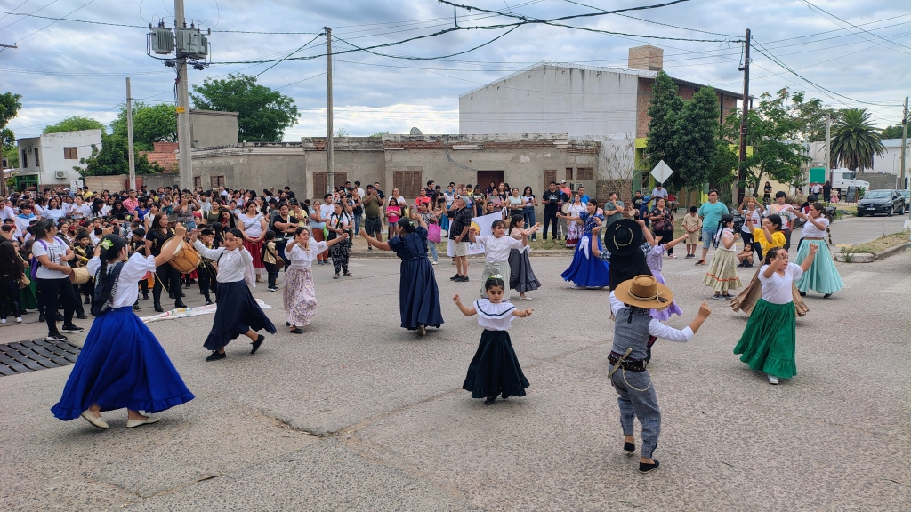 La marcha recorrió la avenida San Martín con paradas en calle 27 de abril, 9 de julio, Belgrano y finalmente en el acceso al Paseo Capital del Agro. En cada parada hubo intervenciones de academias de danzas locales.