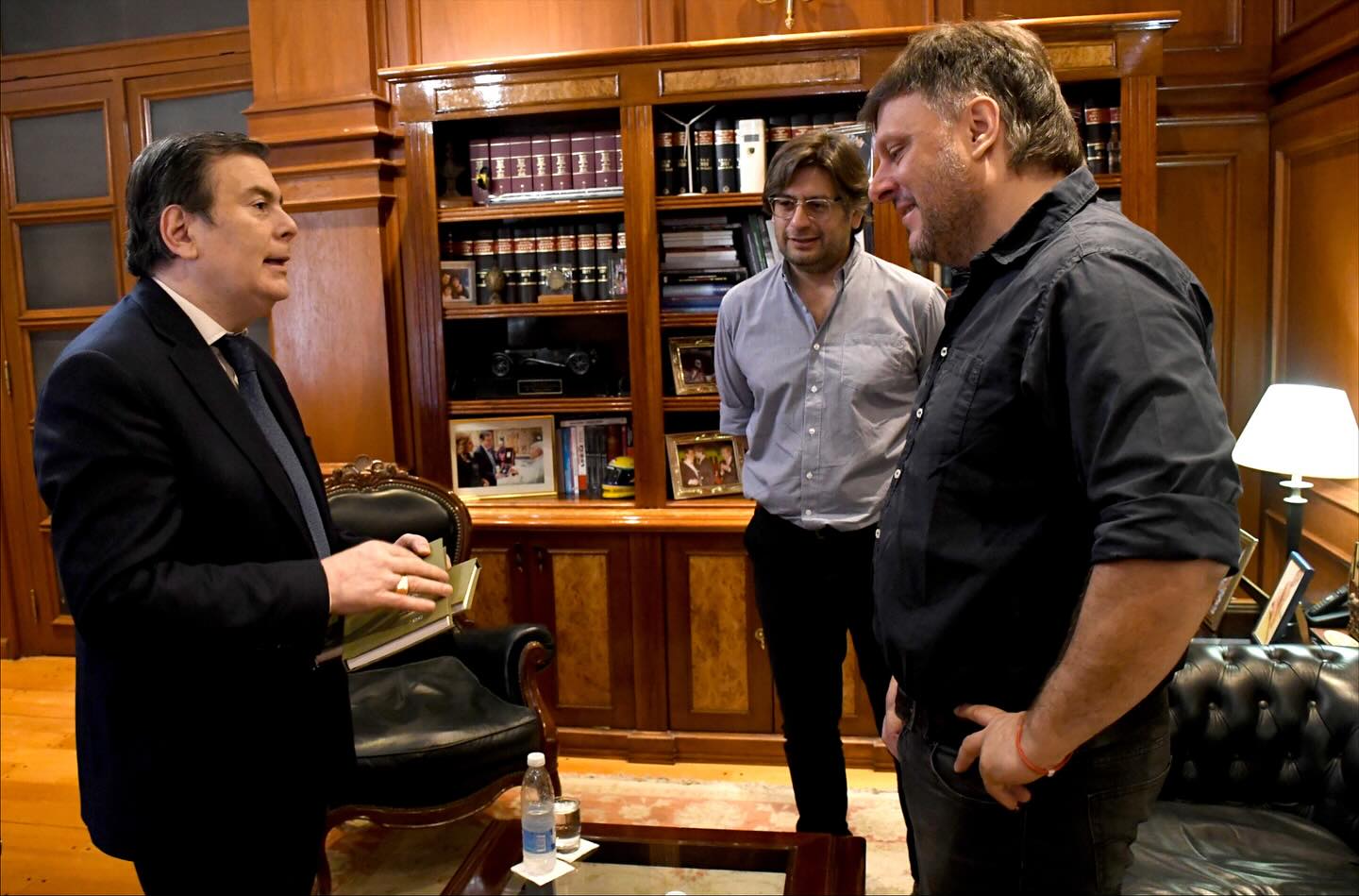 El gobernador Gerardo Zamora, acompañado por el jefe de Gabinete, Elías Suárez, recibió al diputado nacional Leandro Santoro, quien participó en el día de ayer de un conversatorio en la ciudad de Fernández.