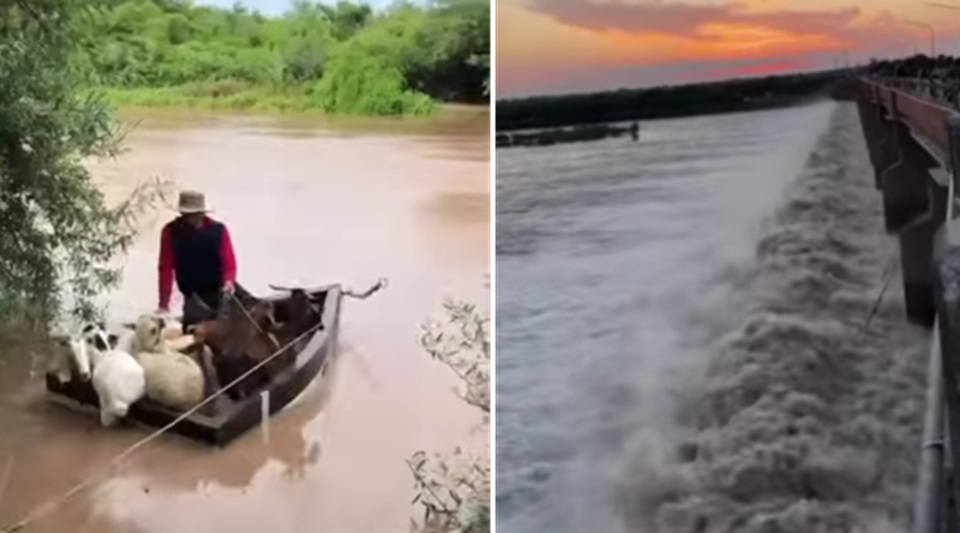 Así ponían a salvo sus animales pobladores del sur santiagueño ante la crecida del Río Dulce.