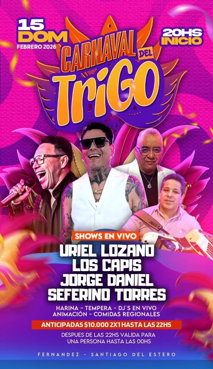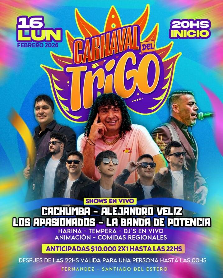 FERNÁNDEZ, Santiago del Estero. – La ciudad de Fernández se alista para vivir una de las celebraciones más grandes de la región: el Carnaval del Trigo 2026. Con una propuesta que combina shows en vivo, tradición y gastronomía, el evento promete convocar a una multitud en el corazón del departamento Robles.