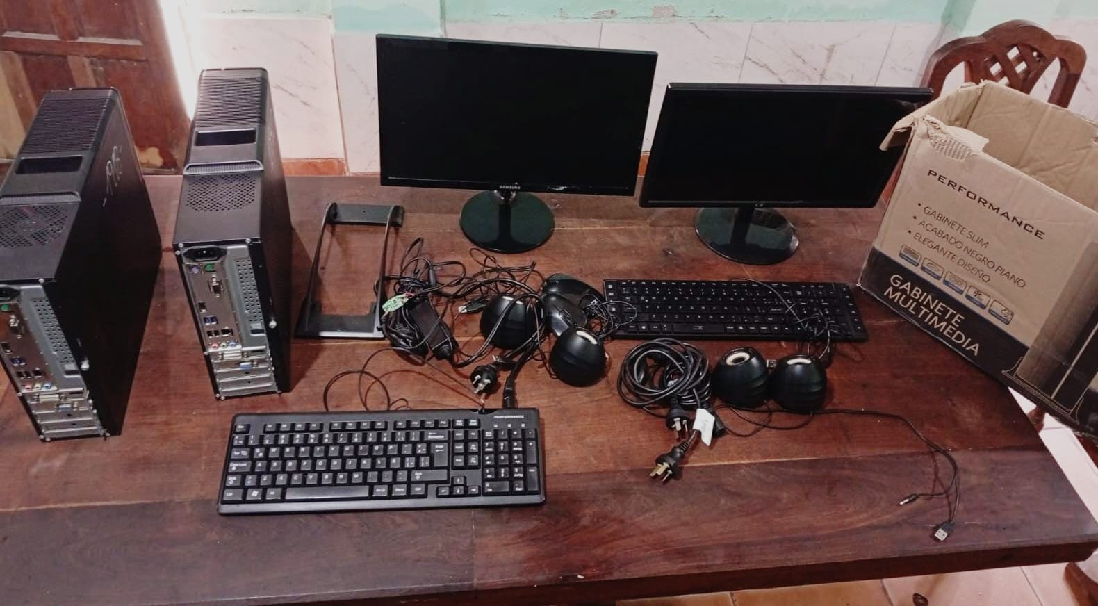 Al revisar el contenido y sospechar de un ilícito, la mujer decidió entregar voluntariamente los equipos para deslindar responsabilidades. Entre lo recuperado en esta segunda instancia se encuentran; un monitor marca CX y un CPU Performance (también con marcas de corrector blanco coincidentes con la denuncia) y teclados y parlantes adicionales.