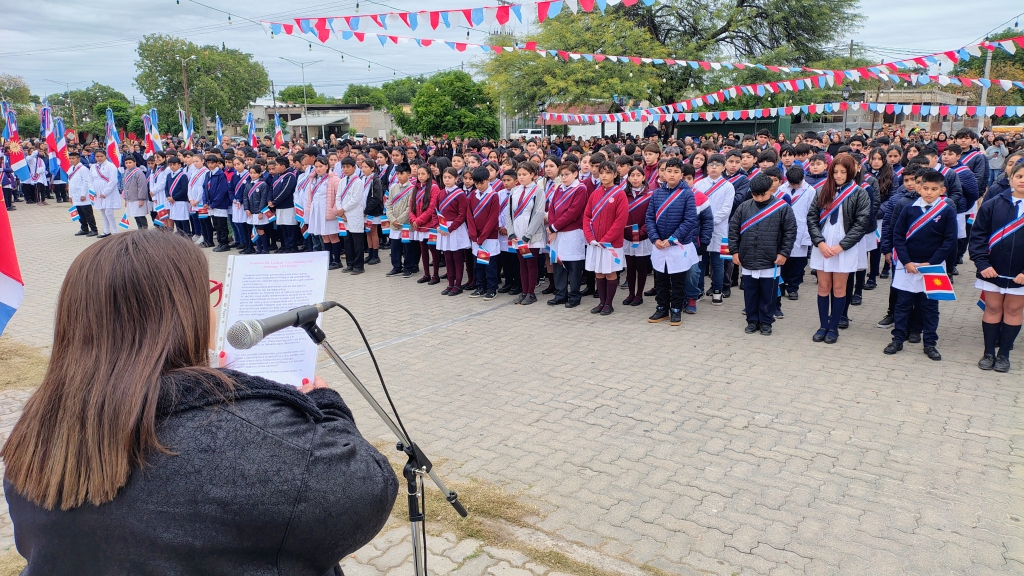 El acto central fue encabezado por la intendente Yanina Iturre y contó con la destacada participación de la Escuela Nº 814 “Paula Albarracín de Sarmiento”. Los alumnos de sexto grado fueron los protagonistas de una jornada cargada de identidad y compromiso civil.