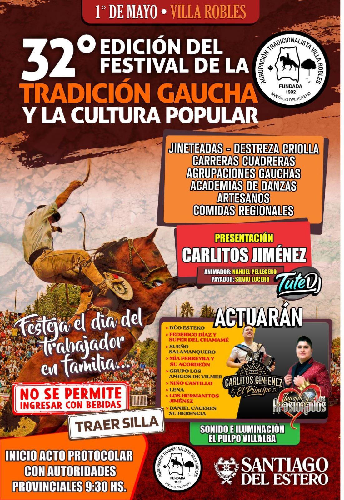 VILLA ROBLES, Santiago del Estero. – El próximo 1 de mayo, la localidad de Villa Robles se vestirá de gala para recibir la 32° Edición del Festival de la Tradición Gaucha y la Cultura Popular. El evento, consolidado como uno de los encuentros más importantes de la región para honrar las raíces criollas, promete una jornada completa de actividades para disfrutar en familia.